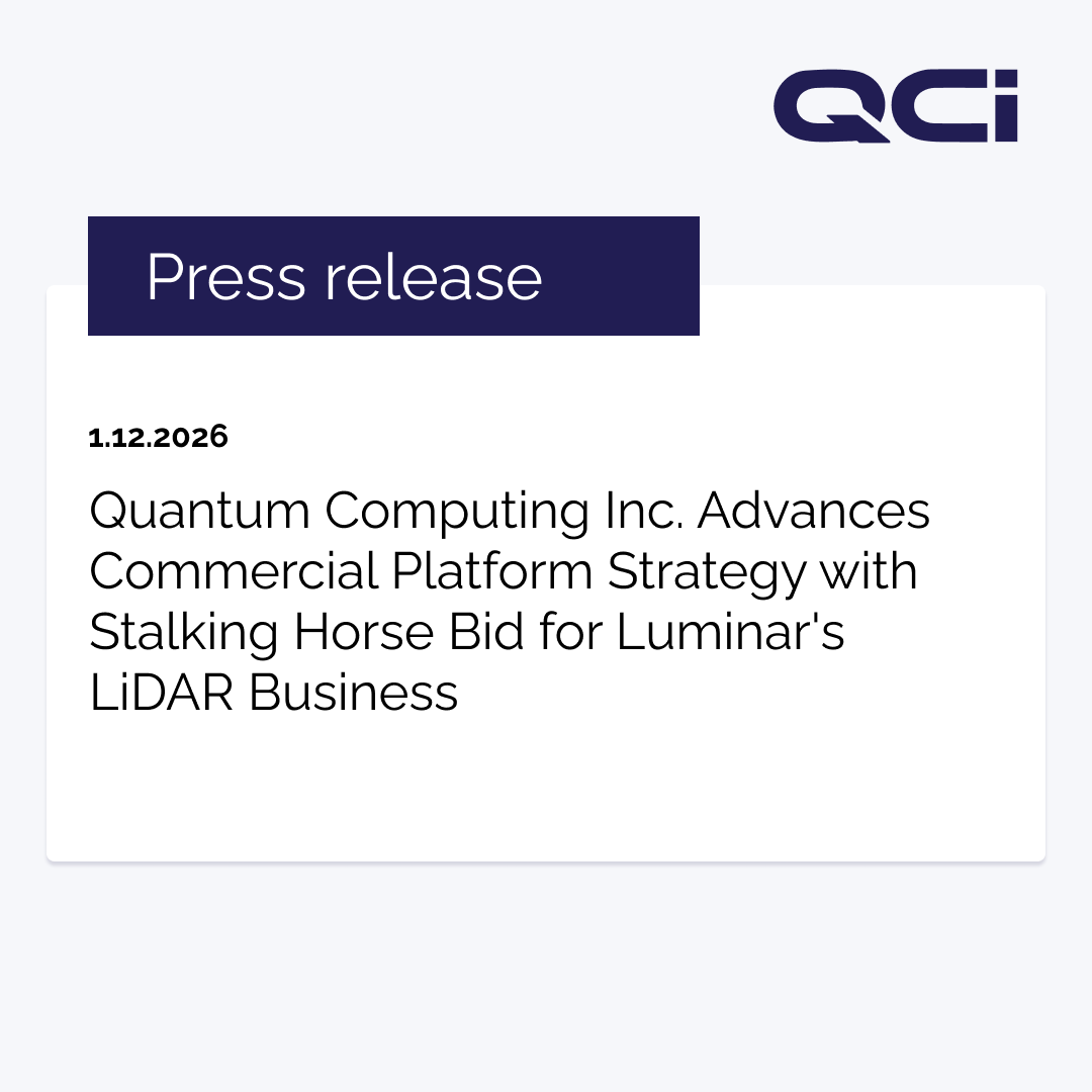 Quantum Computing Inc. Advances Commercial Platform Strategy with Stalking Horse Bid for Luminar's LiDAR Business