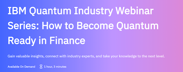 IBM Quantum Industry Webinar Series: How to Become Quantum Ready in Finance